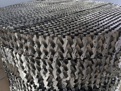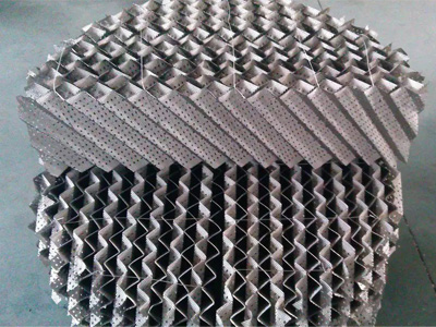 絲網波紋填(tián)料是用於氣(qì)液傳質分離塔設備中的填料,是由不鏽鋼(gāng)絲網壓製成的若幹波紋片,按一(yī)定的直徑要求垂直疊合(hé)組裝成的盤狀規整填料。相鄰波紋片的波紋傾斜方向相反,上下相鄰填料盤的波紋片成(chéng)90°交叉。